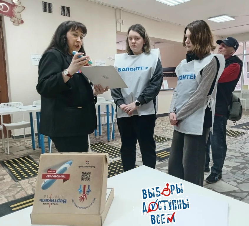Также для голосования тотально слепых избирателей, владеющих техникой чтения по Брайлю, изготовлены специальные трафареты. Председатель УИК Анна Горенкова провела инструктаж по работе с новым технологическим оборудованием и подготовила волонтеров к работе на этом участке.