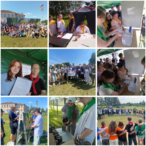 На территории Горняцкой школы Вышневолоцкого муниципального округа правовые волонтеры, участники проекта «Лидер лета 2025» принимают участие в работе эколого-патриотического палаточного лагеря «МЫ».