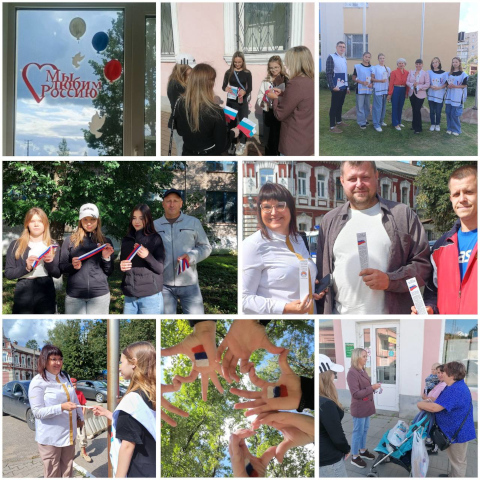 В Кашине активисты молодежных объединений вместе с председателем ТИК Кашинского округа Сергеем Смирновым и членом УИК 296 Еленой Куртьевой провели акцию «Белый, синий, красный». Ребята вышли на улицы и поздравили земляков с праздником, вручили им флажки, ленточки-триколоры и тематические закладки.